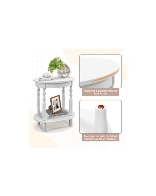 White 2-Tier End Table Oval Compact Sofa Side Nightstand w Storage Shelf Espresso