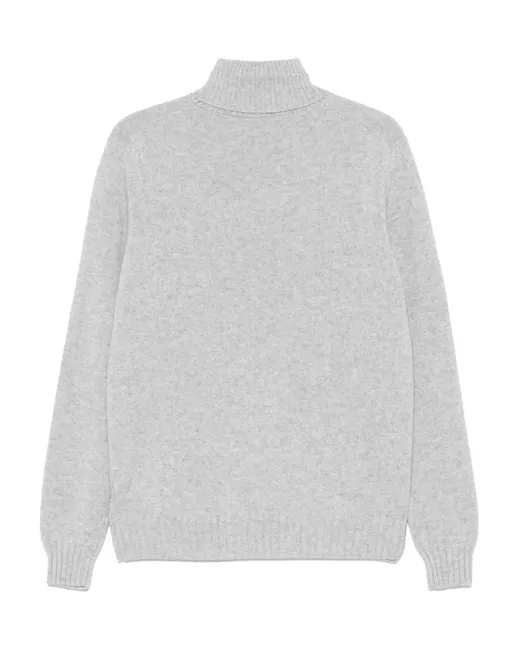 heather grey cashmere knitted construction roll neck long sleeves ribbed cuffs and hem