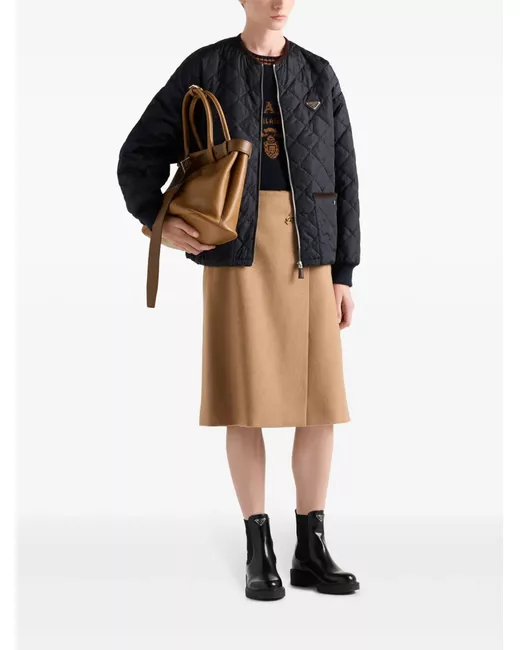 midnight blue virgin wool-cashmere blend knitted construction intarsia-knit logo stripe detailing ribbed trim crew neck long sleeves straight hem