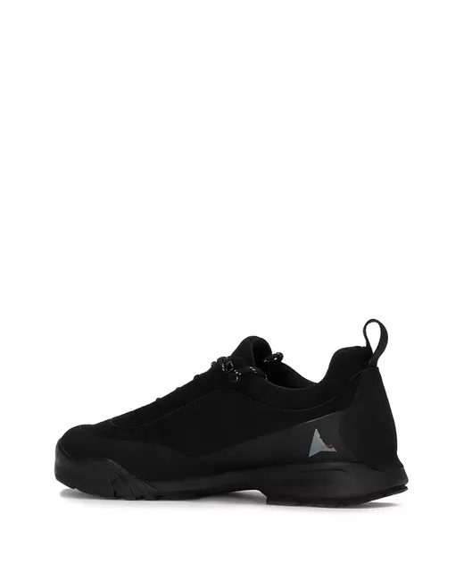 black panelled design front lace-up fastening pull-tab at the heel logo print to the side logo-embroidered tongue round toe branded insole ridged rubber sole