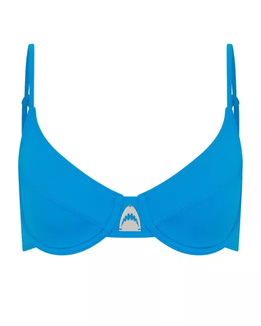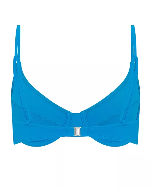 blue recycled polyamide blend stretch-design underwire cup bralette style rear clasp fastening logo plaque adjustable shoulder straps silver-tone hardware Be mindful to try on swimwear over your own garments.