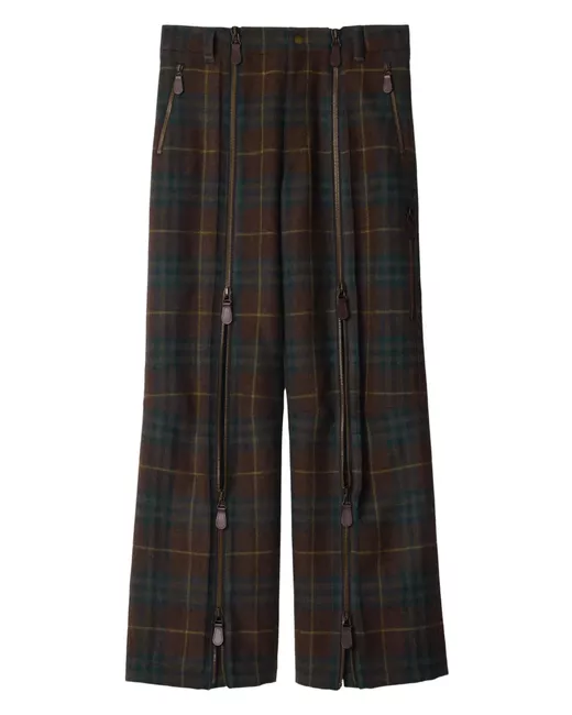 coffee brown/multicolour wool check pattern zip details belt loops front button fastening two rear welt pockets straight leg We've partnered with Good On You — an independent agency that rates how brands perform in relation to their impact on the planet, people and animals, with a multi-criteria rating simplified to a five points scale. In order to be awarded our conscious label, larger brands need to score a minimum of four out of five ('Good'), while smaller brands must score at least three out of five ('It's A Start'). This item comes from a brand rated three out of five ('It's A Start') by Good on You at the time it was added on FARFETCH. Please note, this is a brand-level rating and does not guarantee that this product is made with conscious materials. Learn more about what makes a product Conscious on our Conscious Criteria page