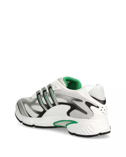 white/black/dark green mesh design front lace-up fastening leather trim signature 3-Stripes logo logo patch at the tongue round toe branded insole chunky rubber sole