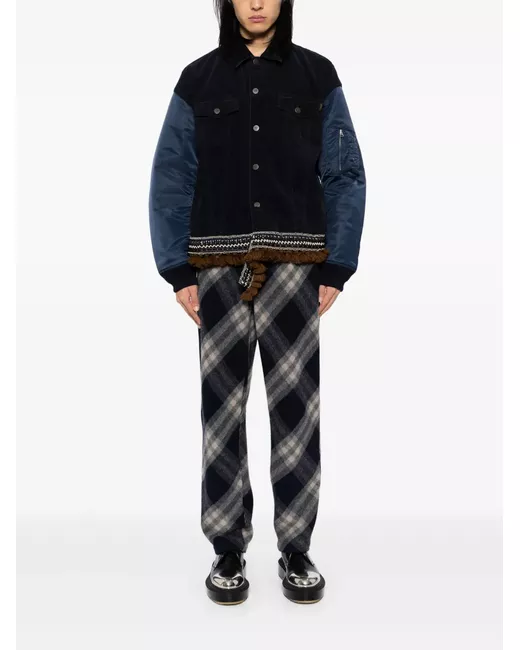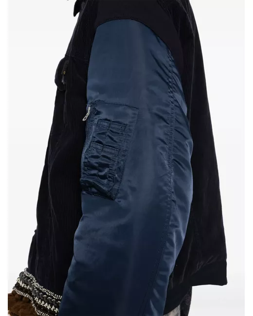 navy blue cotton corduroy button fastening patchwork design padded design bead embellishment long sleeves classic collar ribbed cuffs full lining