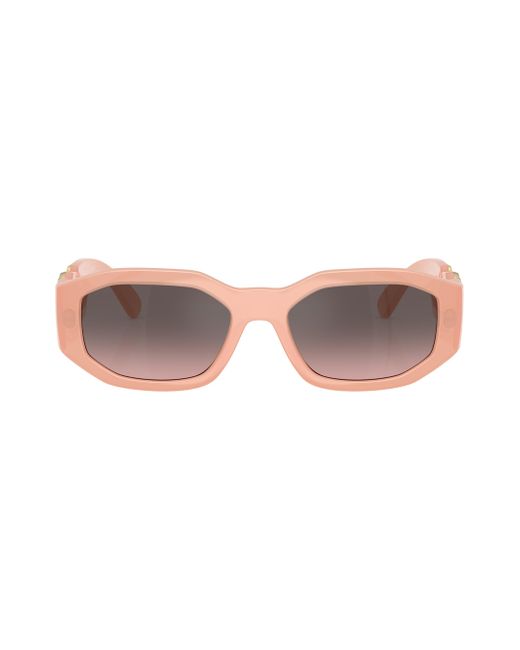 From the Damier Plaque Collection, Versace's sunglasses are a sleek, rimless style that provides a modern and minimalist appeal. Crafted in Italy, they feature a gold-colored oval frame with standard plastic lenses. 100% UV protection Plastic lenses Metal frame Made in Italy SIZE 58mm lens width 13mm bridge width 140mm temple length. Soft Accessories - Men Sunglasses > Versace > Saks Fifth Avenue > Barneys. Versace. Color: Dark Grey.