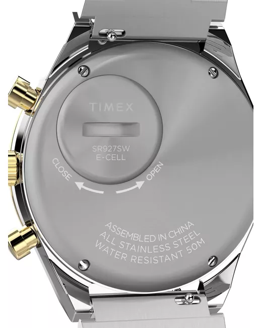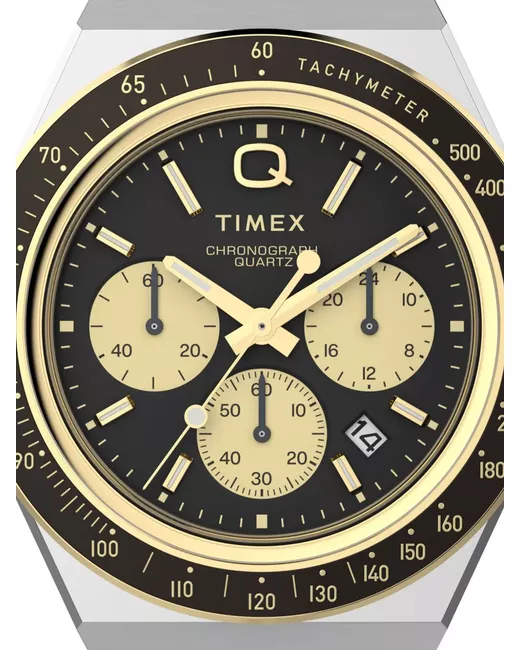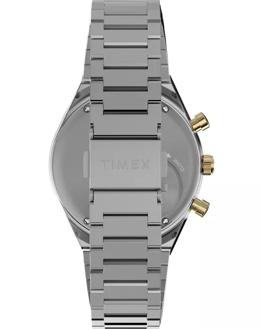 41mm stainless steel automatic movement index dial black dial stick hands three chronograph sub-dials acrylic glass screw-down crown two chronograph pushers fixed tachymeter bezel day-date display stainless steel link bracelet push-button folding clasp water resistance up to 50m/5 ATM