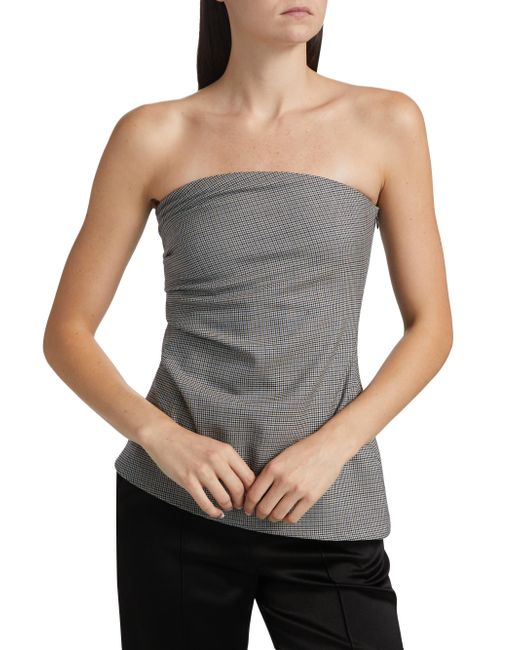 The Genevieve strapless top from rag & bone is crafted of a houndstooth wool blend and styled with an asymmetric hem. Bandeau neck Strapless Asymmetric hem Side zip closure 53% wool/45% polyester/2% spandex Machine wash Imported SIZE & FIT About 19.25" from shoulder to hem Model measurements: 5'10" tall Model is wearing a US size 4 ABOUT THE BRAND In 2002, rag & bone founder Marcus Wainwright combined his British heritage with a downtown-New York aesthetic to set the tone for the label. At the heart of the edgy-yet-laid-back brand is its focus on quality craftsmanship and attention to detail. The epitome of cool, off-duty style, it's no wonder the signature second-skin denim is favored by many. Contemporary Sportswear - Rag And Bone > Rag & Bone > Saks Fifth Avenue > Barneys. rag & bone. Color: Blue Plaid. Size: 8.