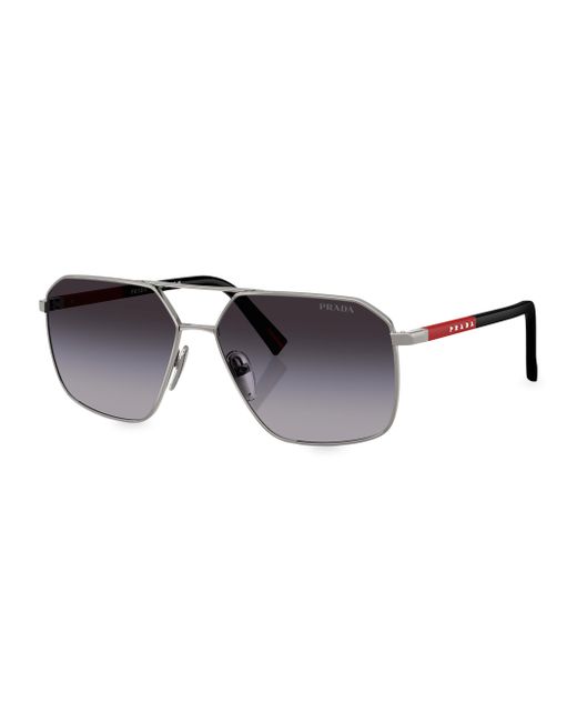 These Prada aviator sunglasses are designed with a lightweight metal frame and a classic pilot double-bridge. This style's silicone square temples offer added durability, and the adjustable nose pads ensure a comfortable fit. 100% UV protection Gradient lenses Adjustable nose pads Includes cleaning cloth and case Metal Made in Italy SIZE 60mm lens width 14mm bridge width 145mm temple length. Soft Accessories - Men Sunglasses > Prada > Saks Fifth Avenue > Barneys. Prada. Color: Gunmetal.
