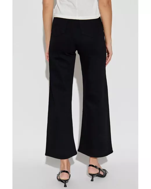 black stretch-cotton denim concealed fly and button fastening belt loops classic five pockets wide leg