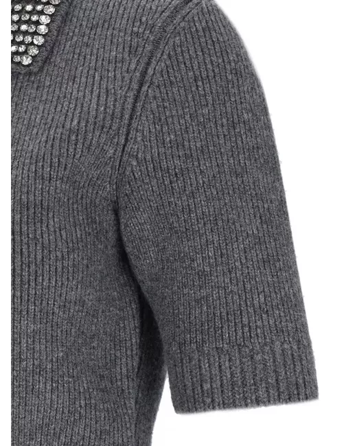 anthracite grey wool ribbed knit ribbed trim front button placket crystal embellishment spread collar short sleeves intarsia-knit logo We've partnered with Good On You — an independent agency that rates how brands perform in relation to their impact on the planet, people and animals, with a multi-criteria rating simplified to a five points scale. In order to be awarded our conscious label, larger brands need to score a minimum of four out of five ('Good'), while smaller brands must score at least three out of five ('It's A Start'). This item comes from a brand rated three out of five ('It's A Start') by Good on You at the time it was added on FARFETCH. Please note, this is a brand-level rating and does not guarantee that this product is made with conscious materials. Learn more about what makes a product Conscious on our Conscious Criteria page