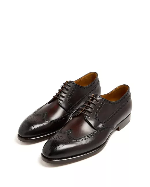 cedar brown leather front lace-up fastening low block heel perforated detailing punch-hole detailing almond toe rubber outsole
