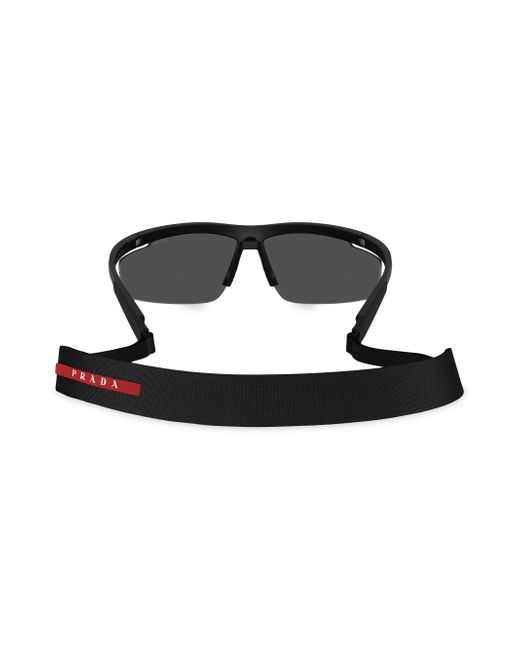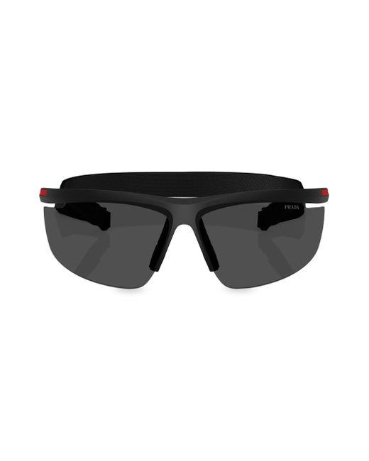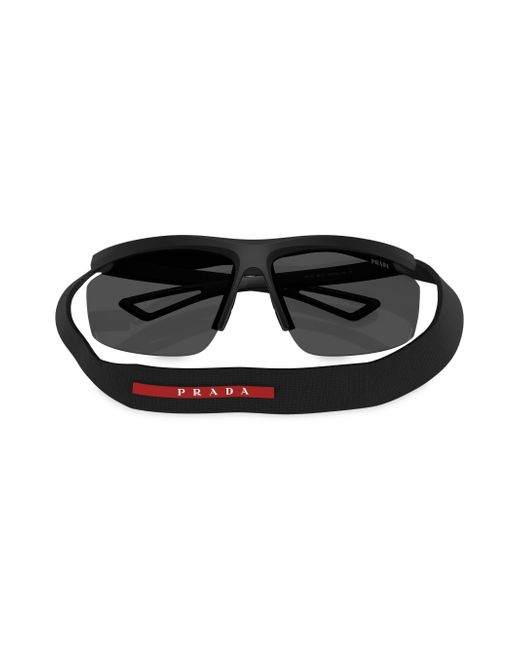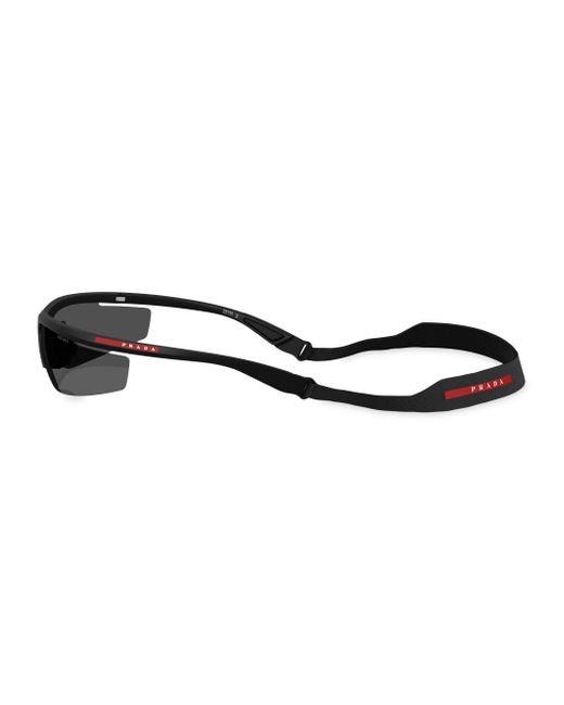 From Prada's Active Collection, these Pillow sunglasses are designed for extreme performance. The aerodynamic wraparound design is inspired by the AC75 Luna Rossa boat, featuring ultra-light frames, a high-ventilation lens system, and functional strap attachment holes. The rubber bridge insert and water-resistant Lycra spandex lanyard ensure comfort and durability. 100% UV protection Plastic lenses Includes case and cleaning cloth Plastic Made in Italy SIZE 96mm lens width 10mm bridge width 130mm temple length. Soft Accessories - Men Sunglasses > Prada > Saks Fifth Avenue > Barneys. Prada. Color: Matte Black.