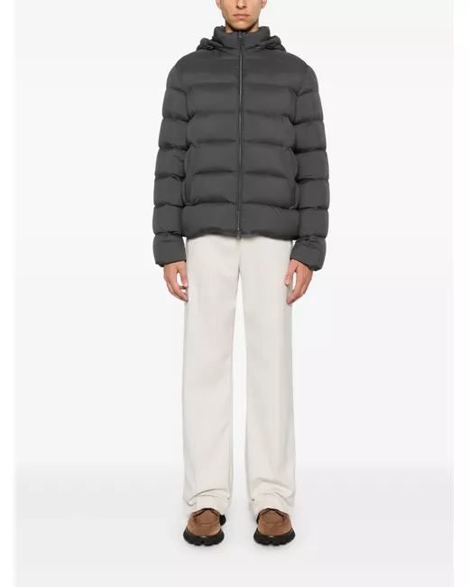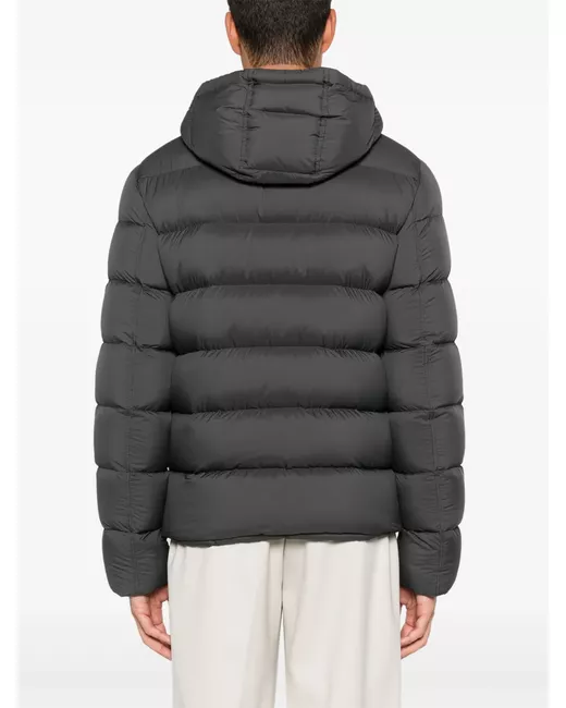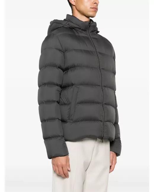 anthracite grey matte finish front two-way zip fastening quilted detachable drawstring hood stand-up collar long sleeves two front welt pockets down-feather filling drawstring hem