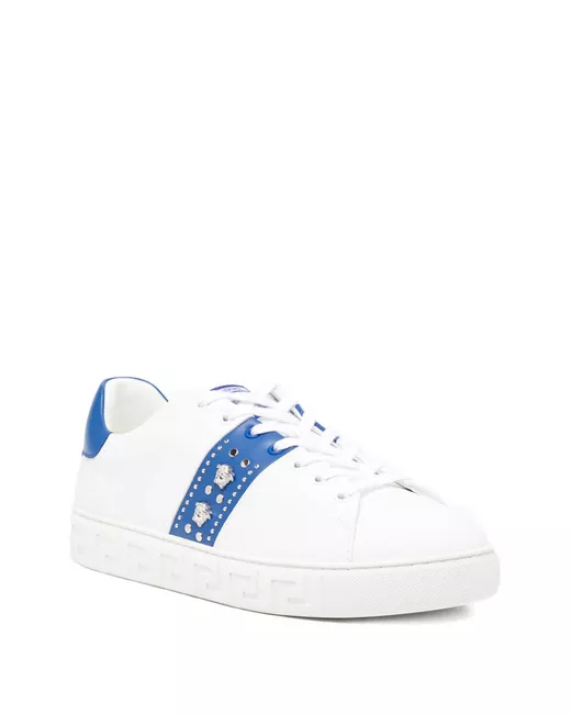 white/black front lace-up fastening Medusa Head motif signature embossed Greca detailing round toe rubber sole