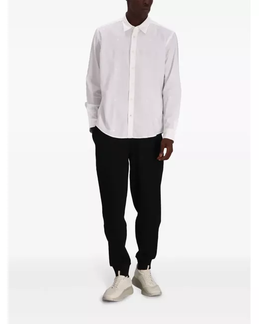 white cotton poplin texture front button fastening classic collar long sleeves buttoned cuffs curved hem