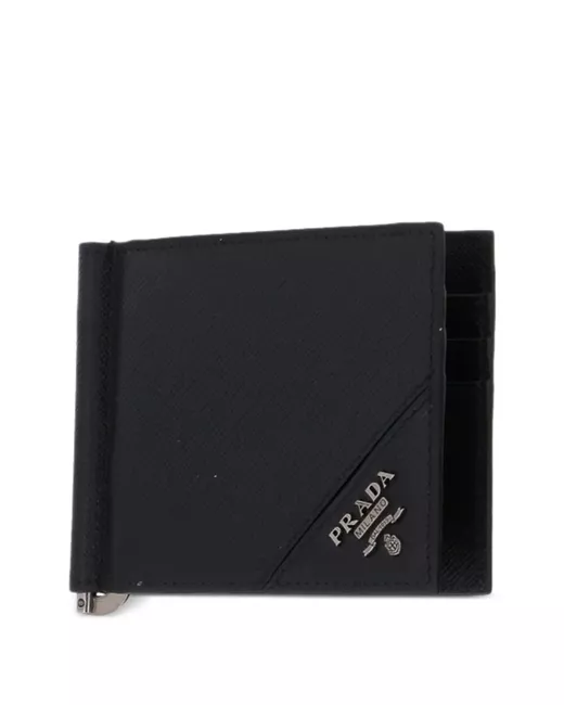 black leather embossed logo to the front bi-fold design rectangle shape internal card slots