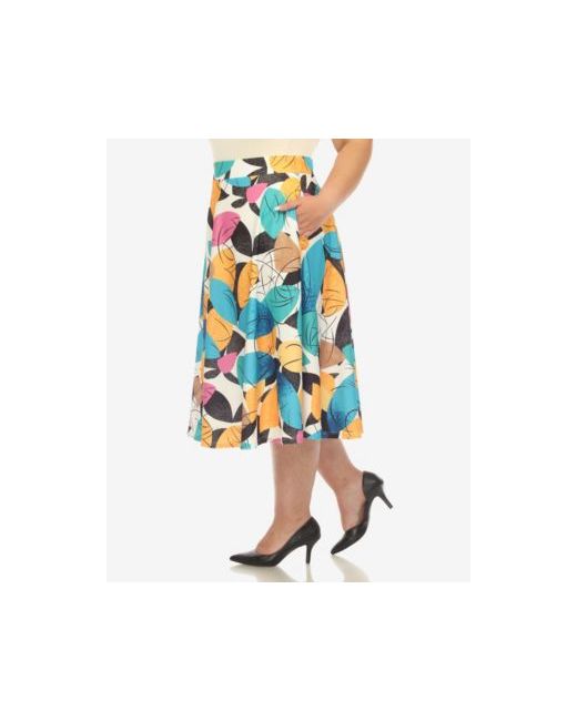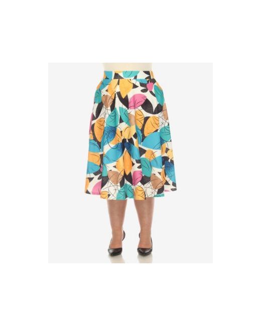 Women's Yellow Plus Leaf Print Vintage Flared Midi Skirt