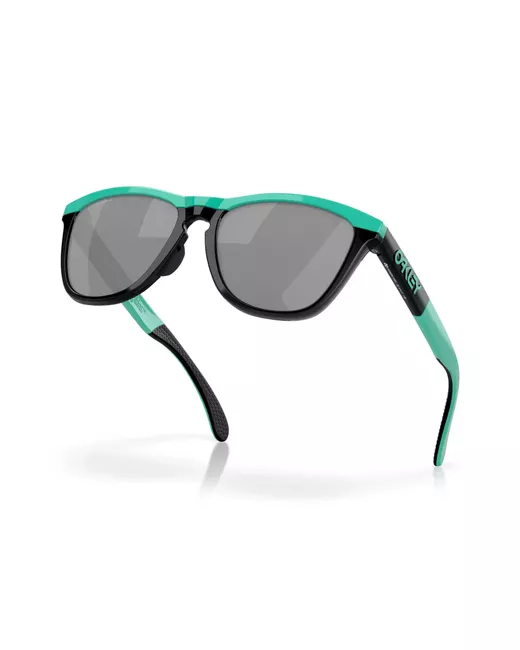 teal green/lilac purple acetate square frame mirrored lenses logo print at the arm straight arms curved tips These glasses come with a protective case.