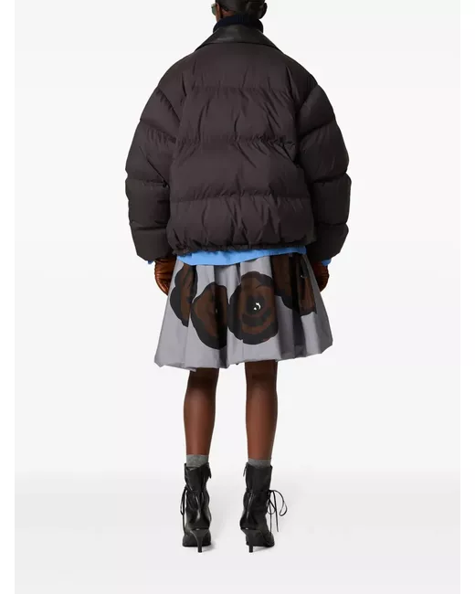 black feather down concealed front press-stud fastening classic collar two front flap pockets long sleeves drawstring hem