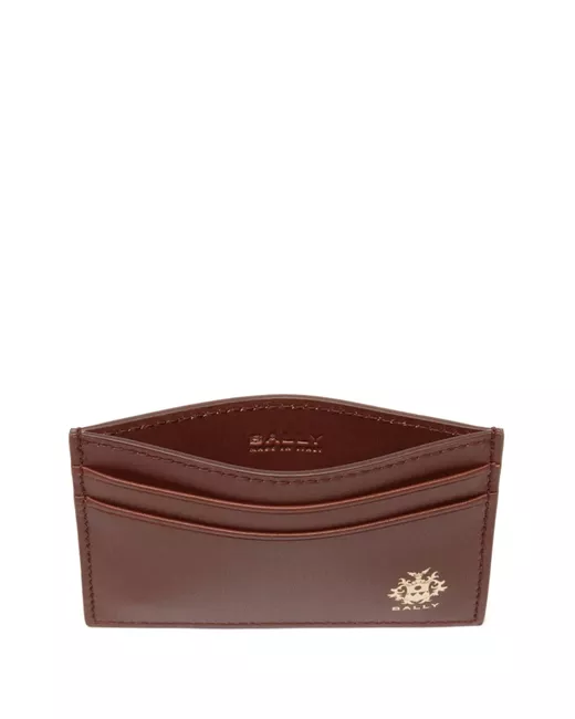 brown calf leather brushed finish gold-tone logo lettering card slots