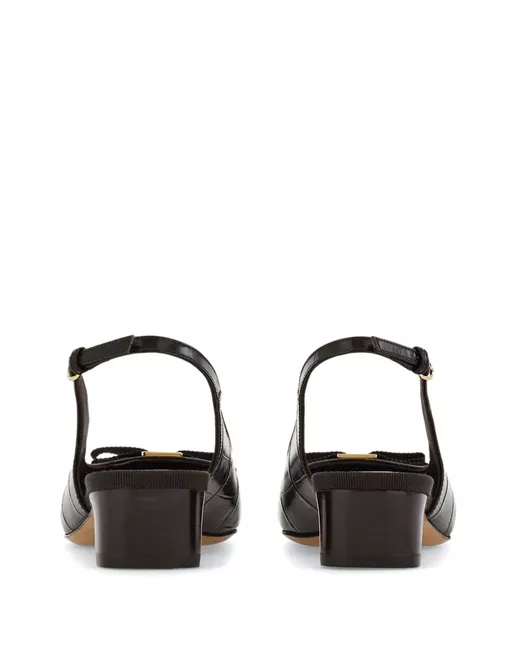 black goatskin buckle-fastening slingback strap 30mm low block heel bow detailing square toe branded leather insole leather sole