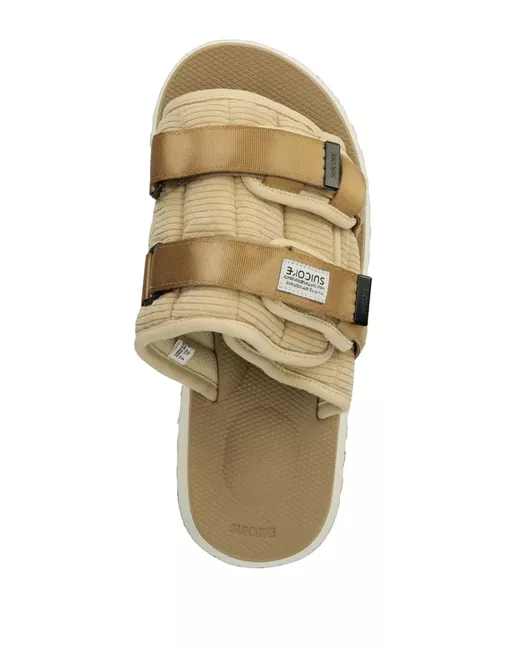 beige logo patch to the front open toe touch-strap fastening slip-on style branded insole flat rubber sole