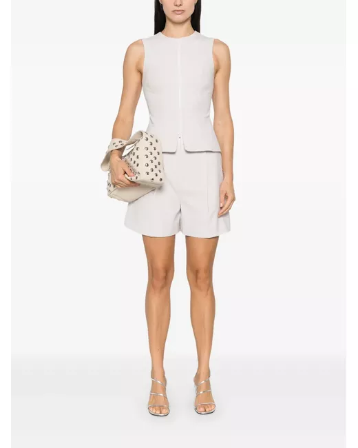 light beige slub texture concealed front button, hook and zip fastening mid-rise belt loops pleat detailing two side inset pockets rear welt pocket full lining tailored cut straight leg