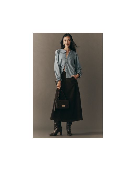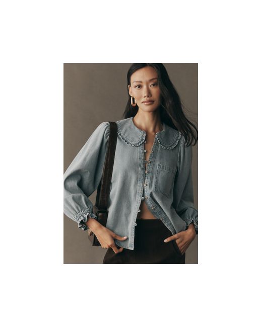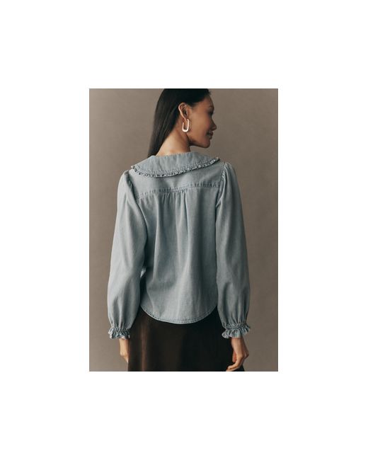 The Victorian-inspired Keira Blouse features a Peter Pan collar, subtly puffed sleeves trimmed with petite ruffles, and hundreds of rave reviews. The Keira Collared Button-Front Blouse by Pilcro: Long-Sleeve Denim Edition in Blue, Women's Size: XS, Cotton at Anthropologie