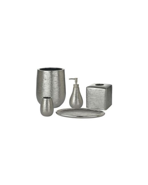 The princess bath accessories are a beautiful addition to any bathroom. The textured pieces are made of stoneware with a metallic electroplated finish for a subtle shimmer. The accessories will give any bathroom an updated look.