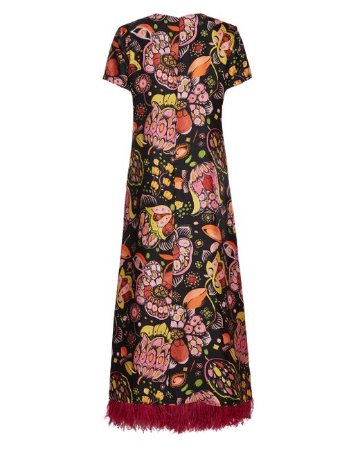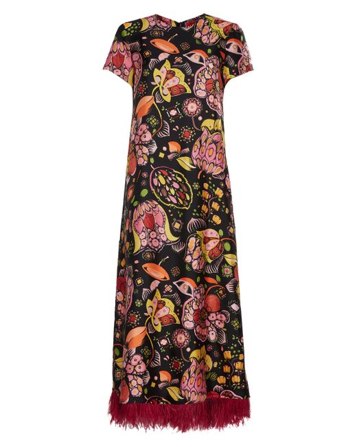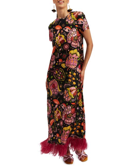 LDJ's iconic Swing Dress takes a twirl in the spotlight hemmed with an all-new ostrich feather trim. Balancing cool and classy with its easy t-shirt silhouette and ankle-skimming feather flourish, it's the sort of dress you reach for when you want to bring a little sass to the situation. Think Bar Basso evening cocktails or a fancy graduation lunch. Also ravishing: its fluid and flowy silk twill fabrication. Silk twill V neckline Asymmetric cut Ostrich feather trim Pull-on Composition: 95% Silk, 5% Ostrich Feathers Model is 180 cm / 5'11" and wears size S Chest: 82 cm / 32 in Waist: 63 cm / 25 in Hips: 88 cm / 35 in Made in Italy. Lsd Rtw - Womens Rtw Lsd Mp > La Doublej > Saks Fifth Avenue > Barneys. La DoubleJ. Color: Eden Black. Size: Small.