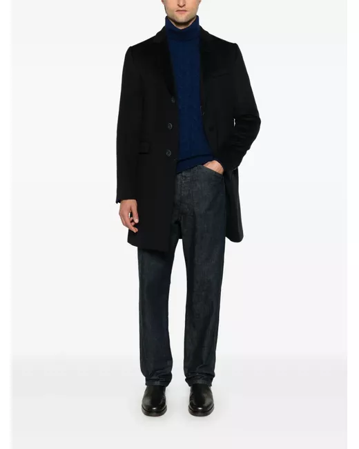 imperial blue virgin wool-cashmere blend cable knit ribbed turtleneck long sleeves ribbed cuffs and hem