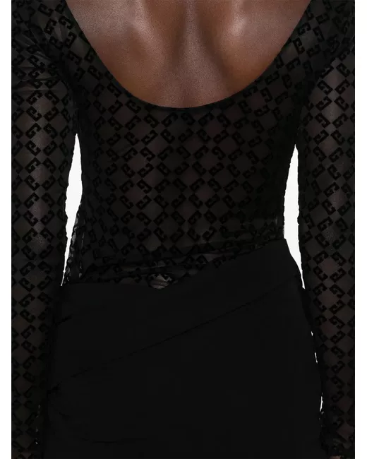 black stretch-design mesh panelling signature 4G motif side zip fastening scoop neck long sleeves draped detailing side slit