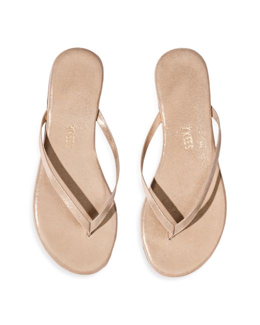 These sandals from Tkees are crafted of metallic leather. Open toe Slips on Leather upper Leather sole Rubber heel Imported. Women's Shoes - Contemporary Shoes > Tkees > Saks Fifth Avenue > Barneys. Tkees. Color: Pink Pearl. Size: 8.