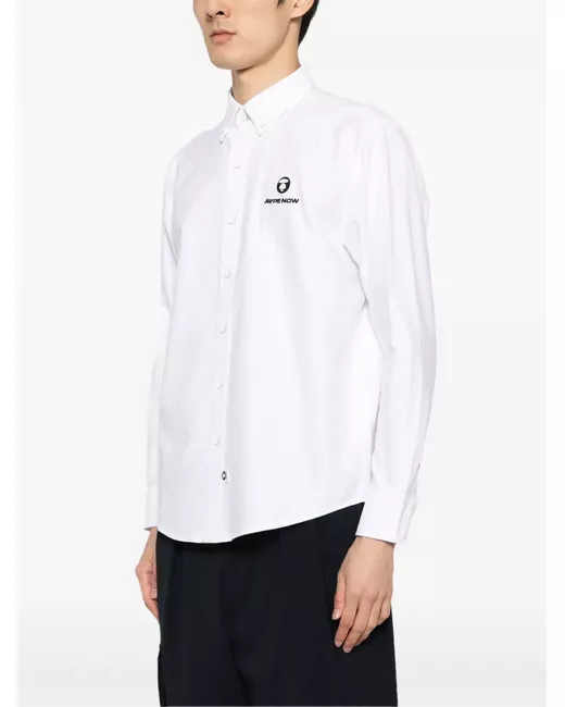 white cotton front button fastening logo patch at the chest classic collar buttoned cuffs curved hem long sleeves