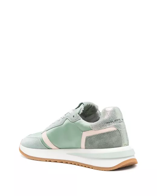 aqua green/white front lace-up fastening multi-panel design contrasting branded heel counter suede panelling logo patch to the side logo patch at the tongue round toe branded insole chunky rubber sole