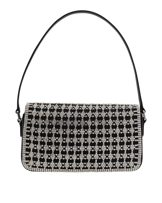 Black shoulder bag from self, portrait faturing frontal bow tone hardware chain and inside pocket