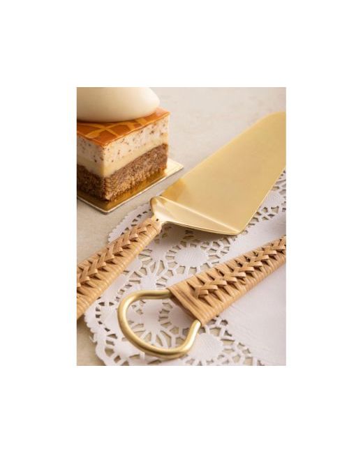 The Helsinki Cake Servers are elegantly crafted from stainless steel with a matte gold finish, featuring beautifully handcrafted handles made from natural rattan woven by skilled Indian artisans. Designed for both beauty and durability, each piece embodies a modern aesthetic while celebrating traditional craftsmanship.Whether you're hosting a cozy brunch or an elegant soiree, these servers elevate your dessert table into a striking centerpiece. Enchant your guests and inspire delightful conversations as they appreciate the exquisite design and craftsmanship of your serving ware.