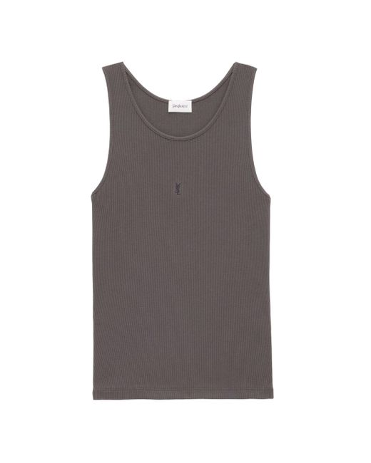 Ribbed tank top made with certified cotton, featuring a round scoop neck and cassandre embroidery on the chest. Round scoop neck Straight hem 100% cotton Made in Italy. Lsd Rtw - Saint Laurent Rtw > Saint Laurent > Saks Fifth Avenue > Barneys. Saint Laurent. Color: Anthracite. Size: XL.