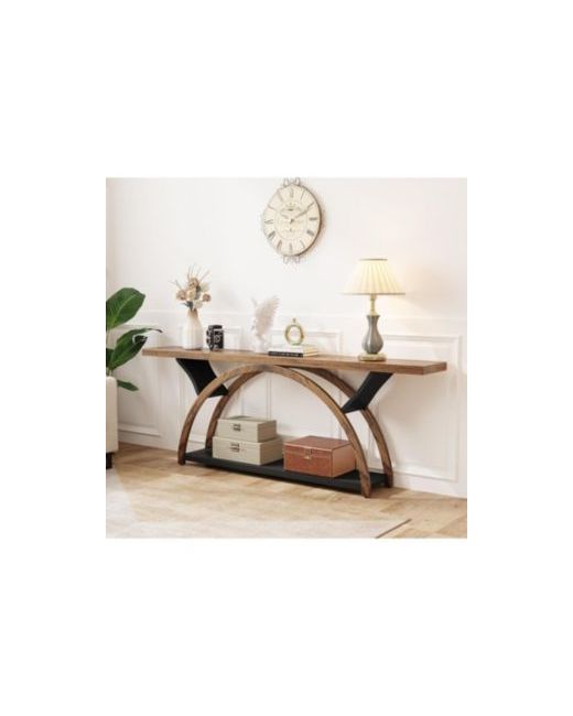 This stylish console table offers ample storage with two open shelves for decorations, books, and more. Perfect for hallways, entryways, living rooms, or as a Tv stand, it fits seamlessly into any space while keeping your items organized.