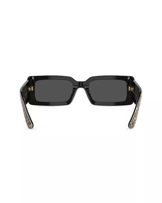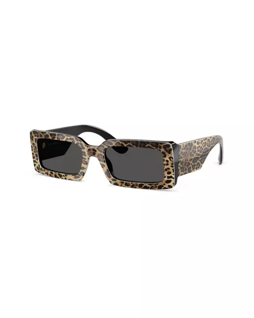 brown acetate leopard print rectangle frame grey tinted lenses logo print at the arm sculpted arms curved tips These glasses come with a protective case.