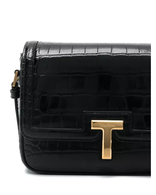 black calf leather embossed crocodile effect patent finish foldover top with magnetic fastening adjustable shoulder strap gold-tone logo plaque main compartment internal zip-fastening pocket internal slip pocket leather lining This piece comes complete with a protective dust bag.