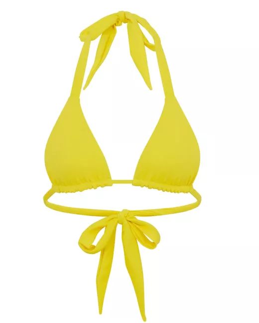 light yellow ECONYL® blend triangle cup halterneck tie fastening rear tie fastening full lining Be mindful to try on swimwear over your own garments.