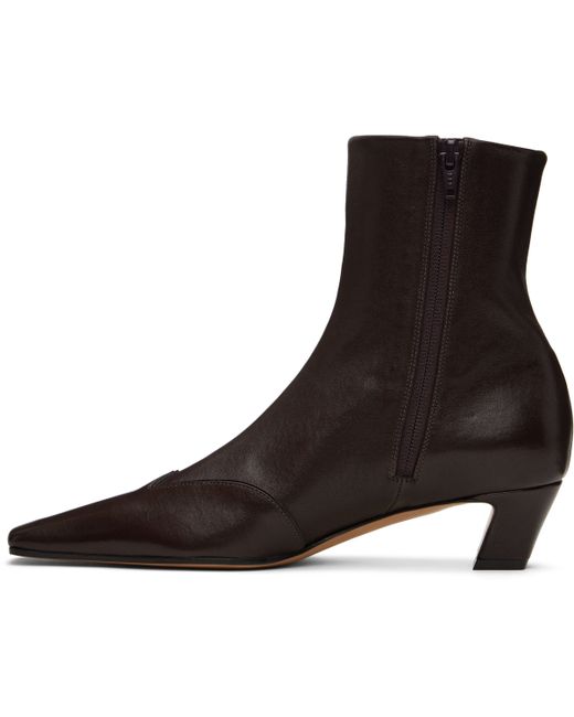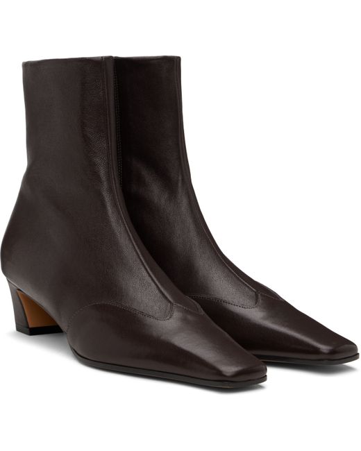 Ankle-high grained lambskin boots in brown. · Square toe · Zip closure at inner side · Covered block heel with rubber injection · Leather sole · Heel: H1.75 Supplier color: Dark brown