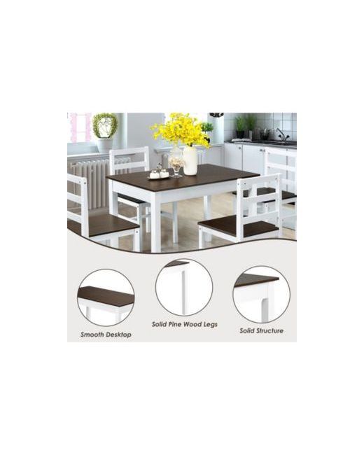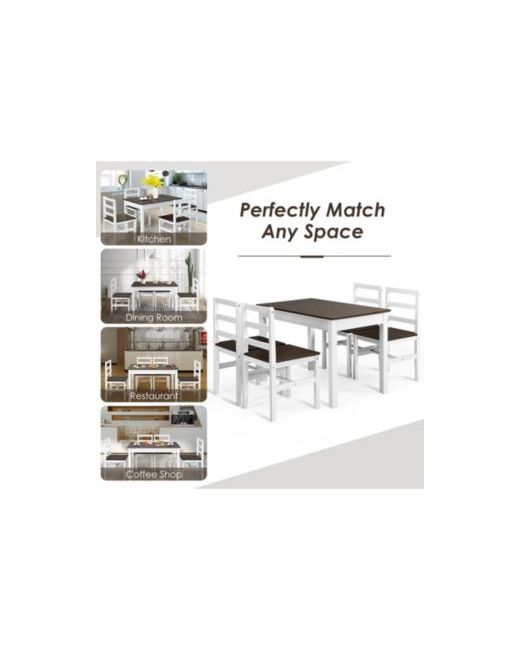 This 5-piece dining set, crafted from durable pine wood, offers a compact design perfect for small spaces. It includes a spacious table and four chairs with supportive high backs and crossbar reinforcements, ensuring both comfort and stability for your family's meals.