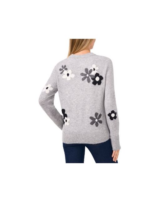 CeCe Groovy Flower Sweater.Color:Light Heather Grey.Size:L.Material:73% acrylic/24% polyester/2% spandex.Sweaters.