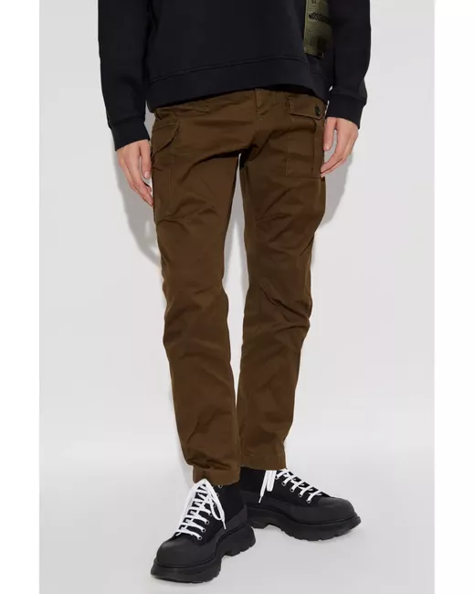 chestnut brown front button and zip fastening multiple cargo pockets two rear button-fastening jetted pockets silver-tone logo plaque