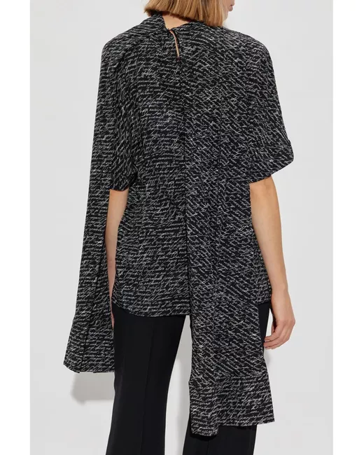 Balmain's script-print blouse in black features an elegant all-over handwritten script pattern. Designed in Italy, this silk blouse offers scarf detailing, a keyhole at the back, short sleeves, and a straight hem for a sophisticated silhouette.Made in ItalyColor: BlackComposition: 100% SilkCare instructions: Dry Clean only