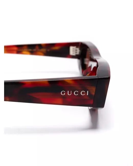 Havana brown acetate cat-eye frame tortoiseshell effect brown tinted lenses logo print at the arm straight arms curved tips These glasses come with a protective case.