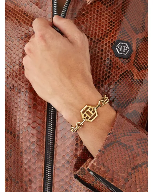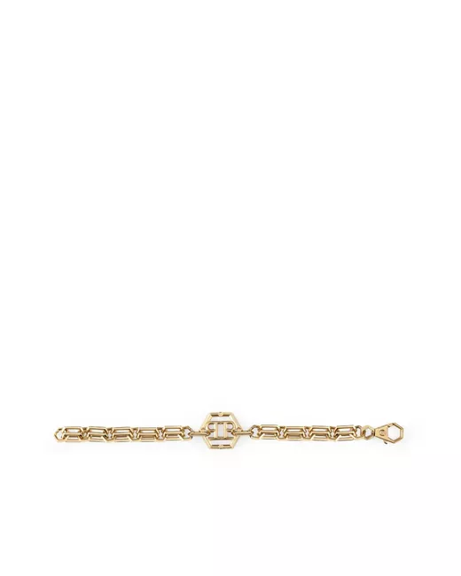 gold-tone lobster claw fastening logo plaque cable-link chain Hallmarked in the United Kingdom at the London Assay Office.