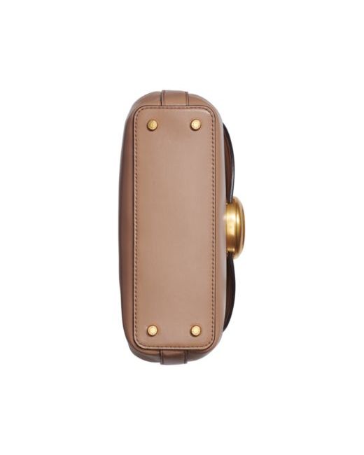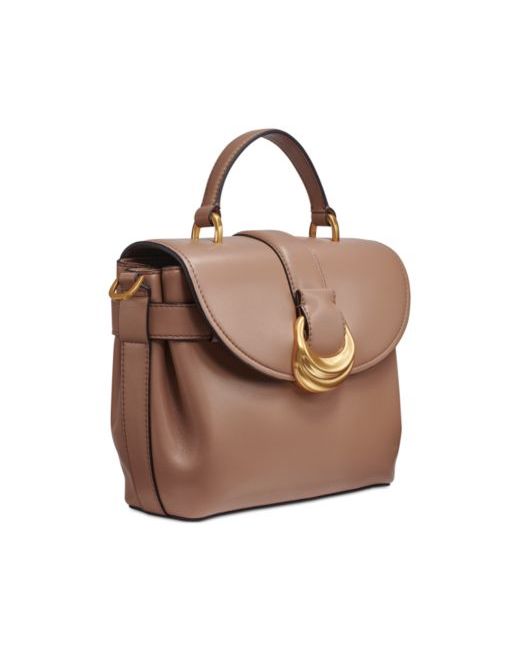 Crafted in leather, this satchel by Donna Karan New York is perfectly sized and accented with hand painted, brushed gold-tone hardware and a chic top handle.